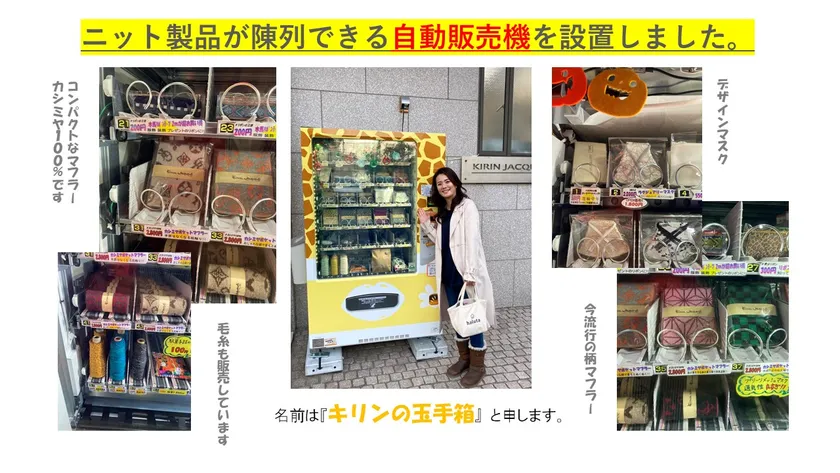 株式会社キリンヂャカード(本社:東京都江戸川区、代表取締役:岡村 智司、以下 当社)は、創業88年のニット製造工場で現在社員7名。2020年4月からコロナ禍での生き残りをかけ、ニット製品の自動販売機の導入、クラウドファンディング(Makuake・READYFOR)マスク製造販売、お守りの製造販売etc...新規事業展開で存続をかけ挑戦を続けています。