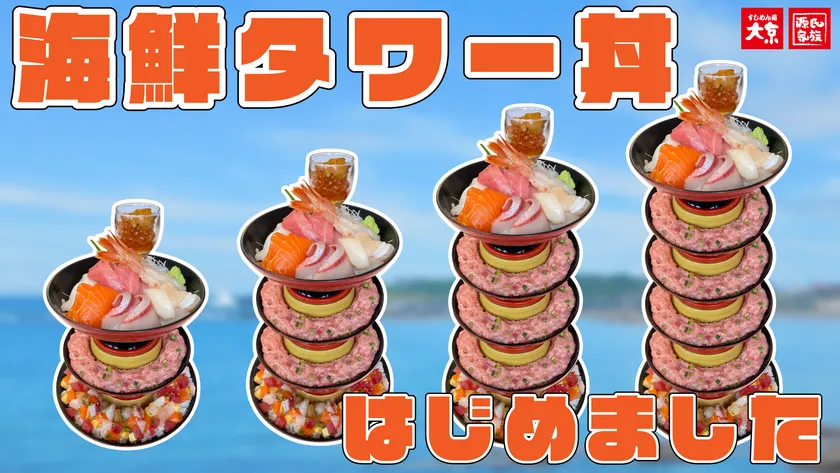 13種類の新鮮な海鮮が楽しめる豪華三段タワー『海鮮タワー丼』を 12月17日より大京グループ全店で販売開始。 豪華天ぷらが乗った『天ぷらタワー丼』も同時発売!