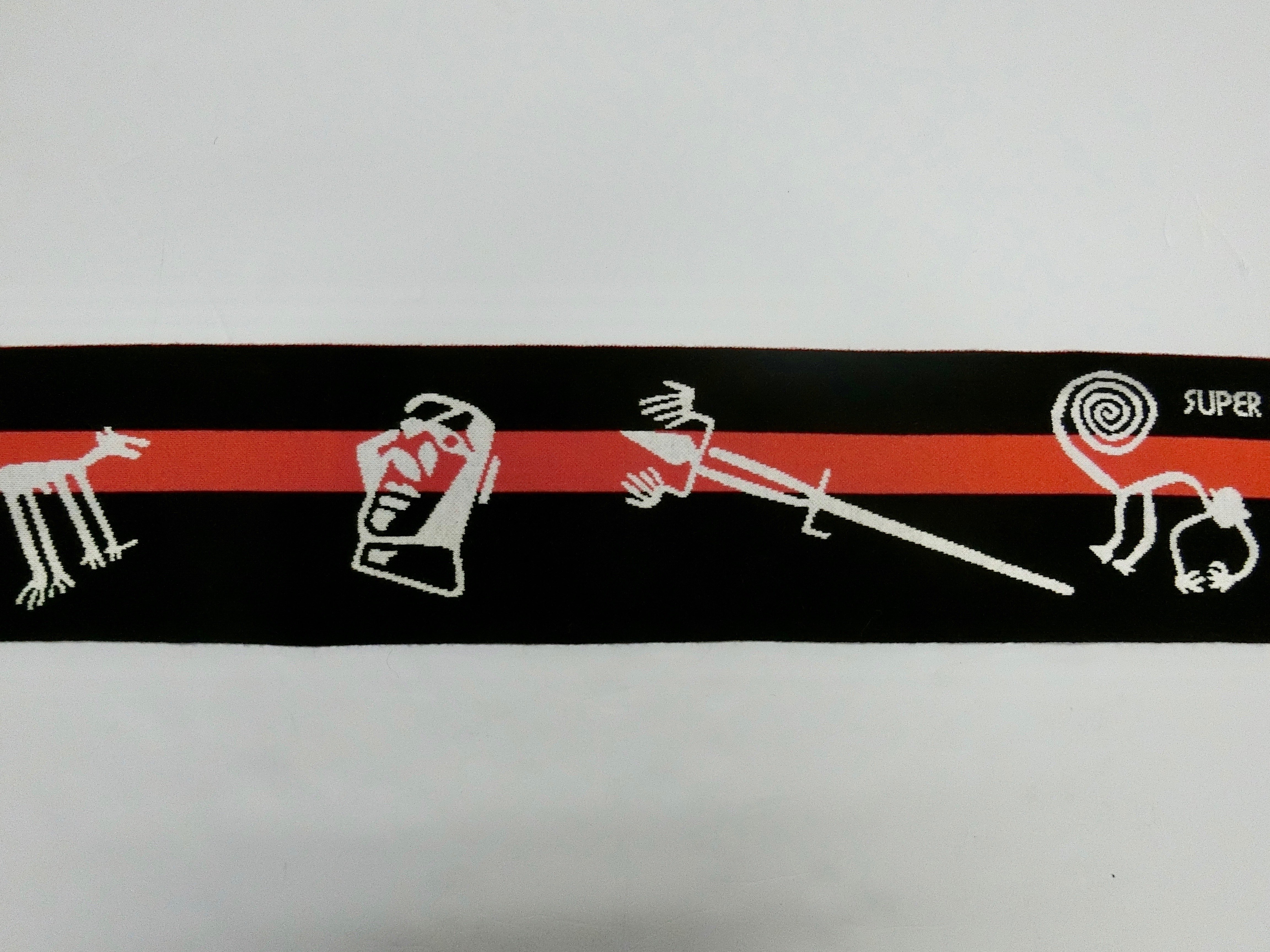 全体的にブラックで、ロゴはレッド。この色の組み合わせだけでも100点なのに、散りばめられているのはナスカの地上絵…。凄まじい存在感と個性がさく裂するあなたの為のマフラー!