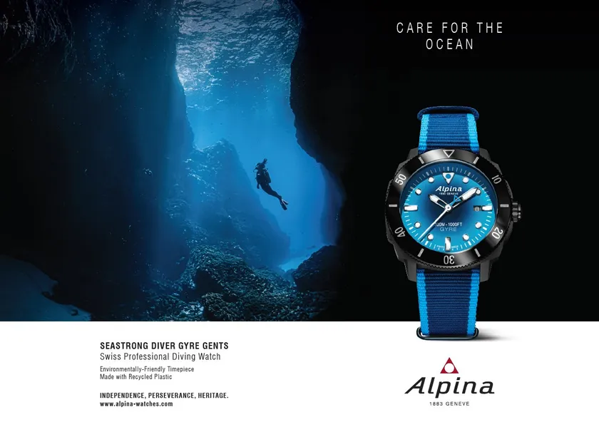2020年冬、Alpina(アルピナ)は「シーストロング」コレクションから、リサイクルプラスチックのケース素材や再生ペットボトル製ストラップなどを採用し環境に配した時計、「ダイバー ジャイル ジェンツ オートマチック」を発売します。また、これを機に、アルピナは新たなパートナーシップを発表します。リサイクル素材の供給責任を担うスタートアップ企業 Gyre Watch(ジャイル ウォッチ)と、海とその利用者の保護活動のモデルとなったNGO、Surfrider Foundation Europe(サーフライダー ファウンデーション ヨーロッパ)とのコラボレーションを実現しました。