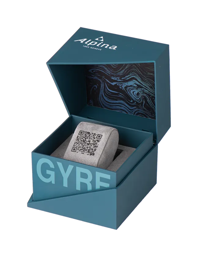 新モデルのための特製BOXも環境に配慮しています。FSC混合紙製ボックスに収められたケース全体が再生プラスチック(ABS)で作られ、梱包材にはリサイクルプラスチック(rPET)が使用されています。ケースに添えられた独自のリーフレット(保証書と証明書)の印刷にもFSC再生紙が使われています。また、アルピナは、エコロジカル・フットプリントの減少を目的として、全製品の取扱い説明書の印刷を廃止し、QRコードから閲覧可能なシステムを採用します。ご購入者はQRコードでアクセスする専用サイトにて、商品特徴や、使用素材、取扱い方法やメンテナンスに関する詳しい情報をご覧いただけます。