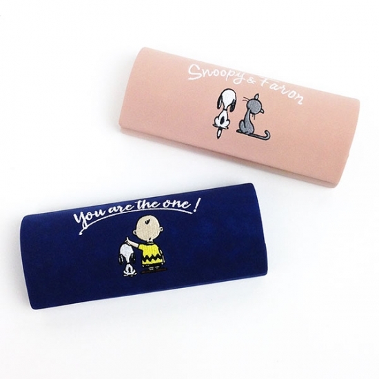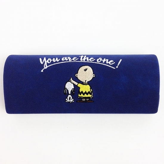 スウェード調の手触りのメガネケースです。スヌーピーとチャーリーブラウンのバックスタイルデザインがキュート♡刺繍されているので立体感もありますね♪