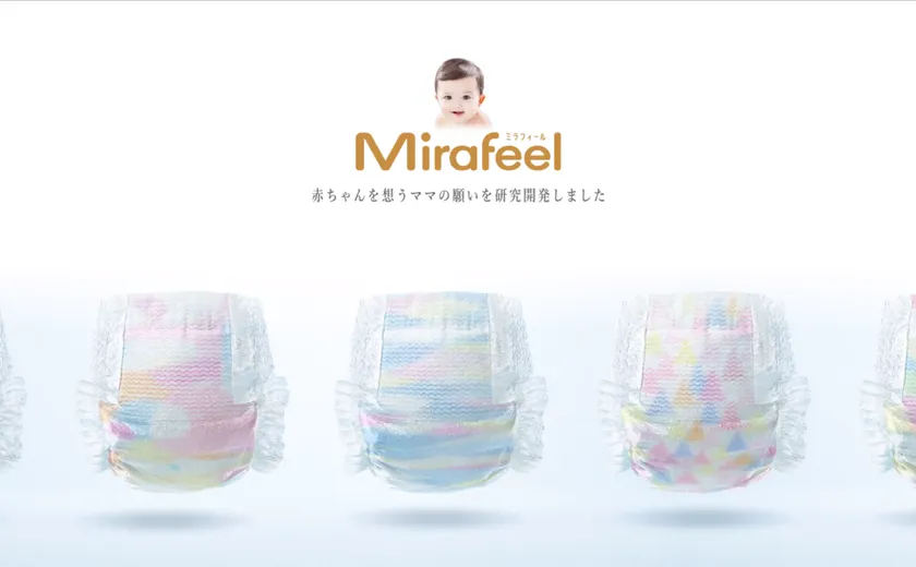 「日本の最高技術を集め、世界一の紙オムツを作り世に問いたい」という目的の下、日本の紙オムツづくりに長けた技術者たちが一堂に会し、新設の日本の工場で、新たな視点で研究開発され作り出された紙オムツがMirafeel(ミラフィール)です。