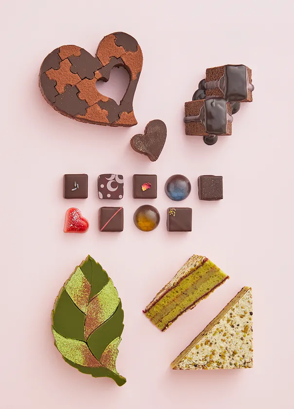 『クラブハリエ Valentine Collection 2021』では新作として15種類のボンボンショコラが登場。世界大会出場経験をもつショコラティエの技術が光るボンボンショコラは、チョコレート本来の美味しさにも気づいていただけるよう豊富なフレーバーでお届けいたします。また、インスタライブの商品開発で誕生した「ピスタチオサンド」もバレンタイン仕様で登場。このほかクラブハリエのバレンタインの代名詞、チョコレートガナッシュを使った「ショコラバーム」をはじめ、繊細なデザインが美しい「ハートブラウニー」などの定番商品も取り揃えています。クラブハリエがこだわり抜いたバレンタインをお楽しみください。