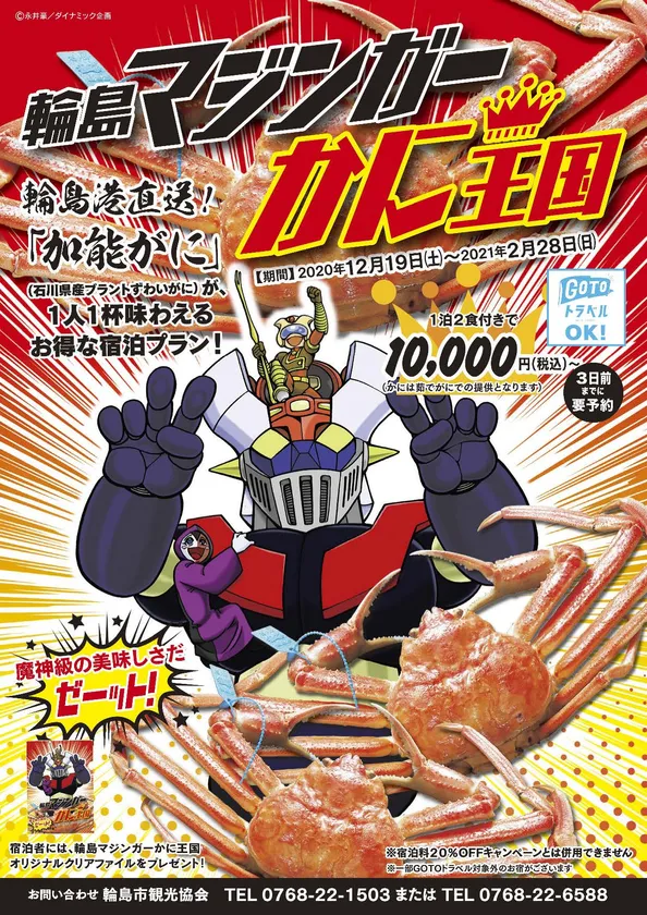 一般社団法人輪島市観光協会では、2020年12月19日(土)~2021年2月28日(日)の期間中、「輪島マジンガーかに王国」キャンペーンを実施いたします。