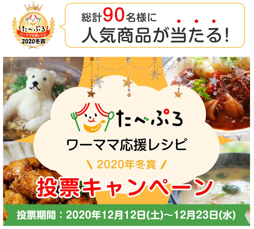 ◆たべぷろワーママ応援レシピ2020冬賞 投票キャンペーン特設ページ