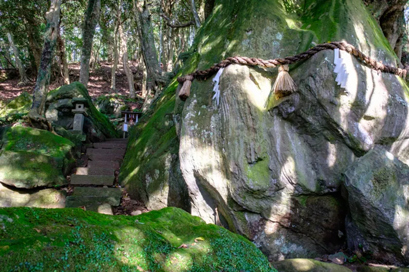 神谷神社の一角にある巨大な磐座(いわくら)が、主人公・竈門炭治郎が一刀両断した岩に似ていると、注目を集めています。