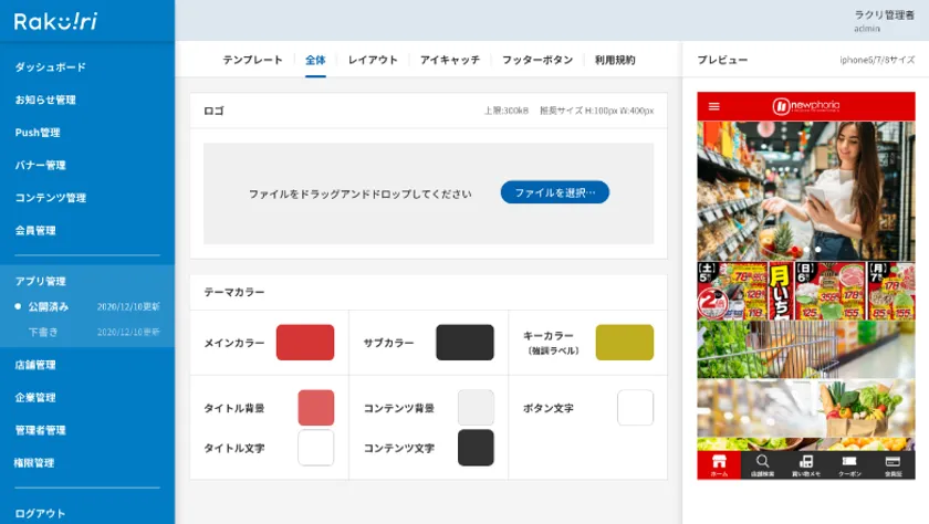 「ラクリ(TM)」は、プログラミングスキルがなくても、誰でも直感的にiOS/Androidスマートフォン向けのアプリを開発・運用できるアプリクリエイティブクラウドです。画像やテキスト素材を用意し、Webブラウザ上の管理画面でテンプレートに沿ってコンテンツを登録するだけで、簡単にアプリのUIを作成できます。さらにアプリ会員管理やpush通知などの運用ツールやアプリダウンロード数などの分析ツールも管理画面上でまとめて提供し、低価格なランニングコストで自社コンテンツのアプリ化を実現します。