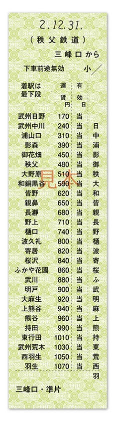 3)発売箇所:秩父鉄道 羽生、熊谷、武川、寄居、長瀞、秩父、
