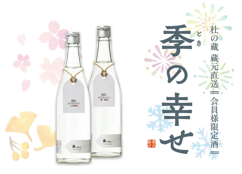 「旨い」の先にある幸せをお届けすることを目指している福岡の酒蔵・株式会社杜の蔵(所在地:福岡県久留米市三潴町、代表取締役:森永 一弘)は、今年で13年目を迎える会員制特別企画「季(とき)の幸せ」の募集を12月18日に開始いたしました。応募してくださった方に年4回、2つの酒米「山田錦(福岡県糸島産)」と「夢一献(福岡県三潴産)」で仕込んだ純米吟醸酒を1本ずつお届けします。
