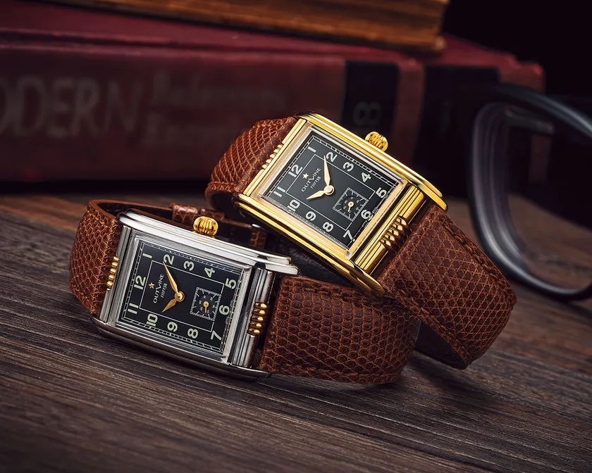型番:(左)Ref.20203-4(右)Ref.20203-5/機能:時分表示/素材:真鍮ケース(メッキ、裏ブタはステンレススチール)/サイズ:ケースサイズ24×31mm、ケース厚8.3mm/ムーヴメント:手巻き(Cal.FHF138)/限定本数:限定33本(シルバーケース15本、ゴールドケース18本)。各13万2000円/保証期間:1年