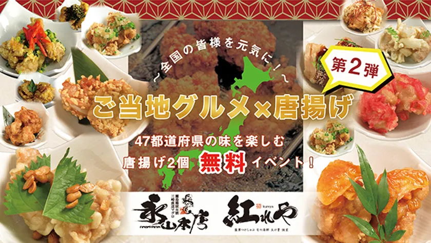 ご好評につき第2弾!全国の皆様を元気に! 47都道府県の味を楽しめる唐揚げ企画を「永山本店」「紅れや」 「ながやま亭。」で開催! お好きなご当地唐揚げを無料でプレゼント!