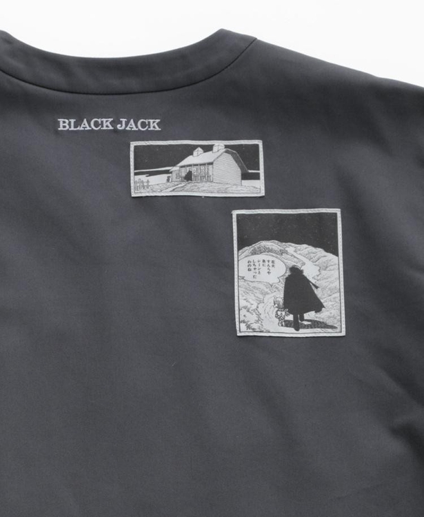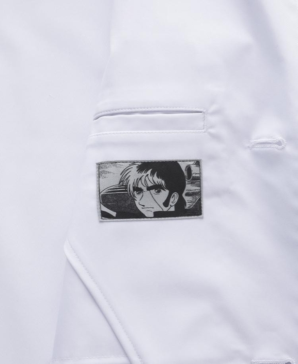 第1話『医者はどこだ!』から厳選したコマとセリフをモチーフに、物語を静かに宿す一着としてデザイン。胸の内ポケットには、間 黒男が初めて登場するシーンを、背裏にはラストを飾る印象的なシーンを配し、思わず心が動くようなディテールを忍ばせました。
