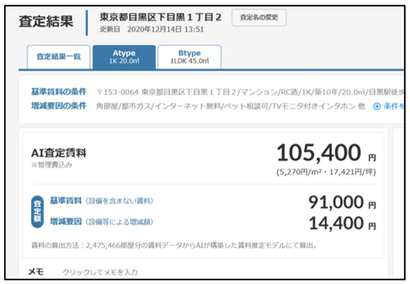 スマサテ株式会社の「AI賃料査定システム」を導入。過去の成約賃料や設備情報等を基にAIが瞬時に算出した査定価格に、当社営業担当者の知見を掛け合わせて当社独自の査定書を作成します。これまで営業担当者が査定価格を算出する際に行っていた周辺事例の収集及び資料作成の作業時間を軽減することで、業務効率化が図れるとともに、貸主様に対して、スピーディかつ信頼性の高いご提案を行います。