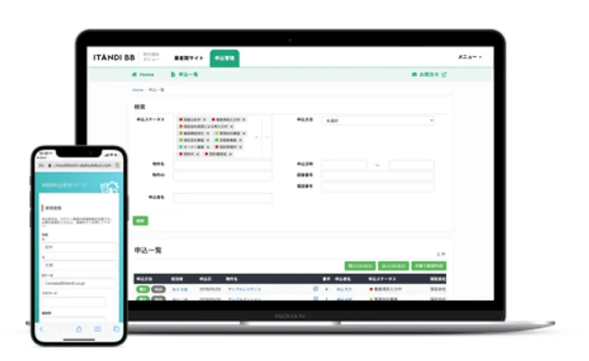 イタンジ株式会社の入居申込Web受付システム「申込受付くん」を導入。入居申し込み手続き(※3)を電子化しました。これまでは、お客様は紙の入居申込書に必要事項を手書きで記入し、来店もしくは郵送・FAX等で当社にご提出いただいておりましたが、今後はパソコンやスマートフォンからオンライン上で必要事項を入力するだけで完結するため、時間や場所にとらわれず、入居申し込みを行うことが可能になります。また、申込書の記入漏れを防止できるため、営業担当者の不備確認にかかる業務負担を軽減できると共に、入居申込書を郵送やFAX送信する手間も無くなり、業務効率化されペーパーレス化も促進されます。