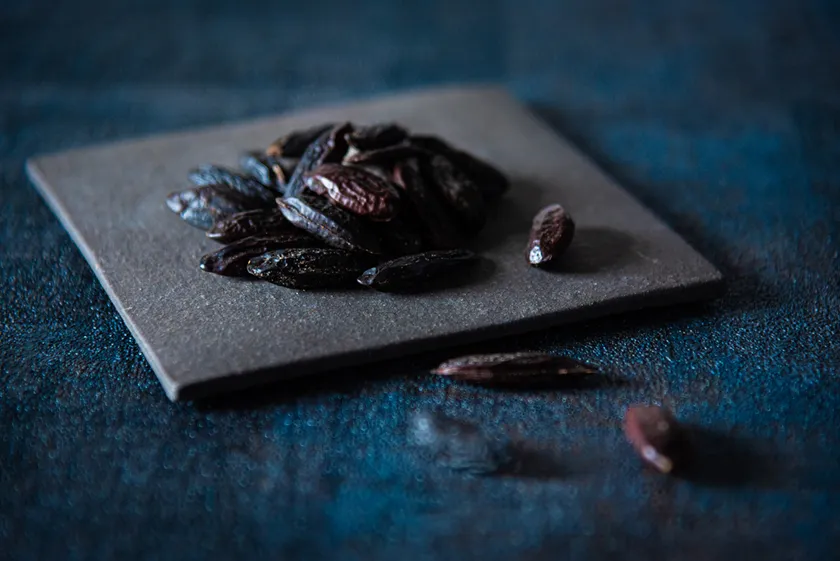 トンカ豆は、中南米のマメ科の種子で、芳香性の高い香りが特徴です。その香りを言葉で表現することは難しいですが、杏仁のような香りともいわれています。チョコレートとも相性が良く、その華やかな香りがより一層チョコレートを引き立てます。