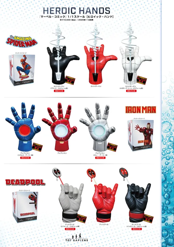その第一弾として「ヒロイック・ハンド」シリーズをリリースしました。マーベルヒーローの手を等身大で立体化したユニークなアイテムです。