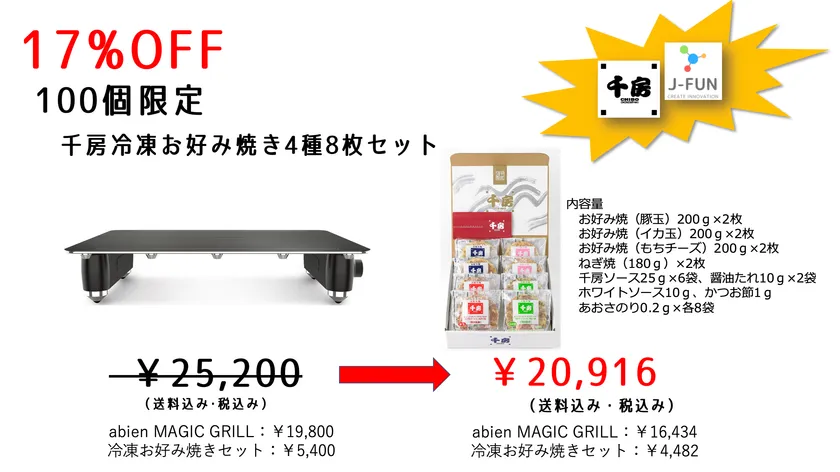 ■abien MAGIC GRILLと千房冷凍お好み焼のセット販売