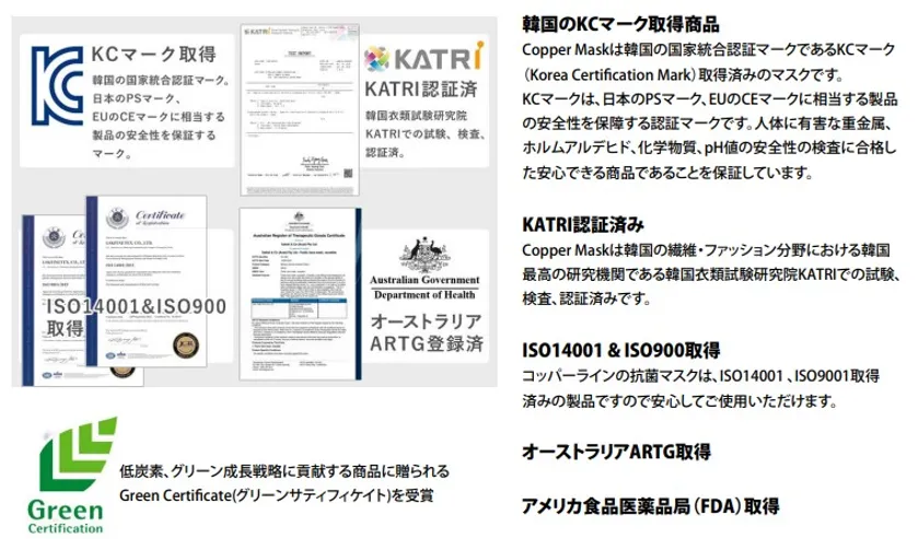 ■韓国 全北大学校 人獣共通感染症研究所実験済み!銅イオン繊維の銅マスク