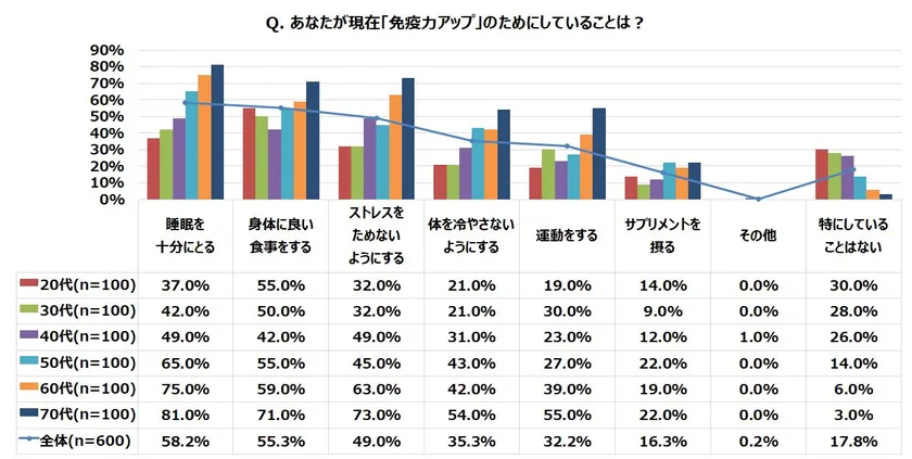 Q3. あなたが「免疫力アップ」のために現在していることをお答えください。(複数回答)【n=600】