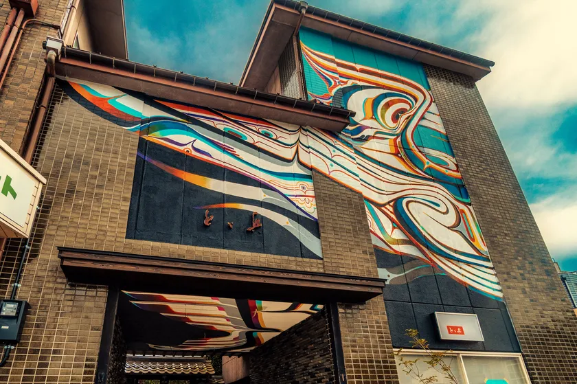 兵庫県豊岡市の旧料亭「とゞ兵」は、90年の歴史をもつ街のアイコン的商業施設でしたが時代の流れとともに廃業となり、街の新たなハブスペースに再生させるチャレンジが始まりました。施設を一部改装し若者らの集いの場を提供し、ウォールアートを外壁に描くことで街の新たな観光資源を創出しています。