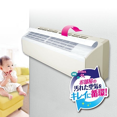 ほこり除けとして、エアコンにフィルターを貼っておくと、内部の汚れ防止に役立ちます。