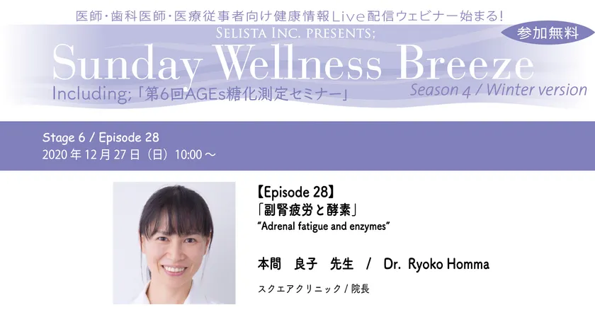 =医師・歯科医師・薬剤師向け無料Liveウェビナー= 《Sunday Wellness Breeze, Season 4, Stage 6 (Episode 28)》12月27日(日)開催!