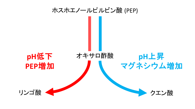 pH、マグネシウム、PEPが、オキサロ酢酸の変換に直接影響を与える重要な因子であると考えられます。