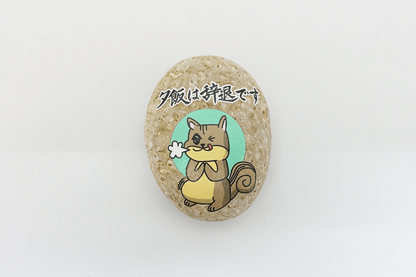 「夕飯は辞退です」のメッセージと共に満腹状態のリスが描かれています。ともするとそっけなくなくなりがちな「夕飯不要」の連絡も、コミカルな表情で両手を合わせて謝るリスのイラストが明るく届けてくれます。 ちょっと申し訳なく思うあなたの気持ちもきっとパートナーに伝わることでしょう。