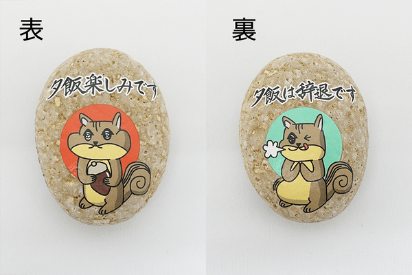 『ころんと伝えるオクストン』から、表と裏で2つの違ったメッセージを伝えられる【夕飯楽しみリス】シリーズを紹介します。