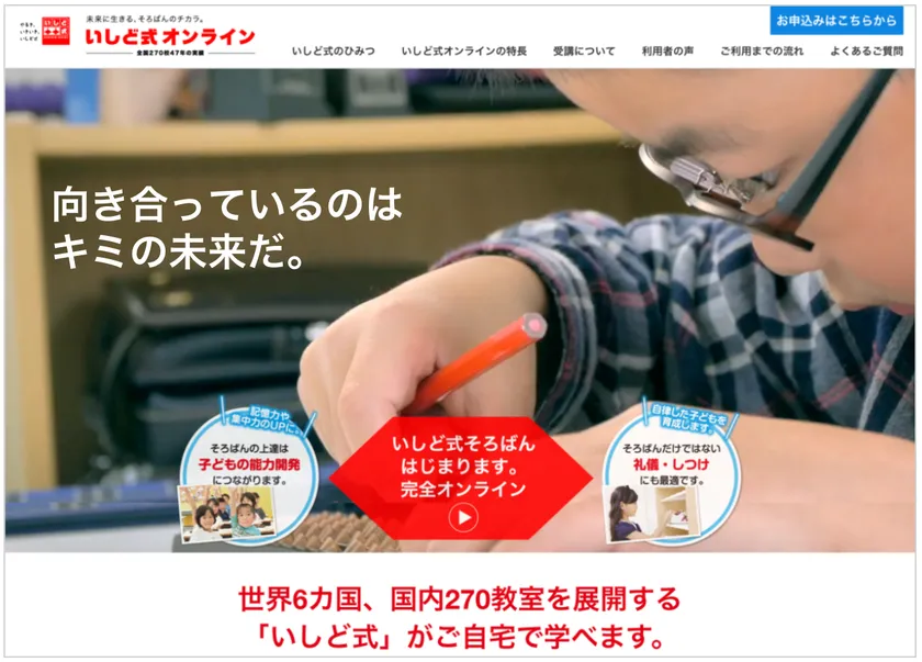 世界6カ国及び日本国内計270教室を展開 能力開発そろばん学習のいしど式が オンラインで全国対応可能に 有料サービス「インターネットそろばん学校」も使い放題