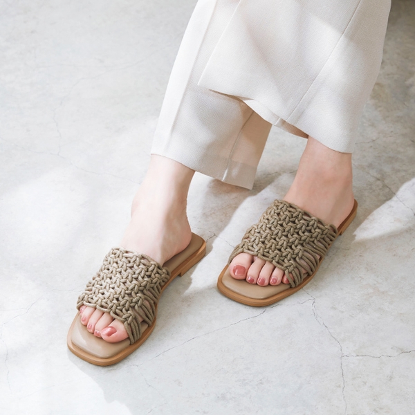 商品名 :menue (メヌエ) スクエアトゥ 編み込み サンダル
