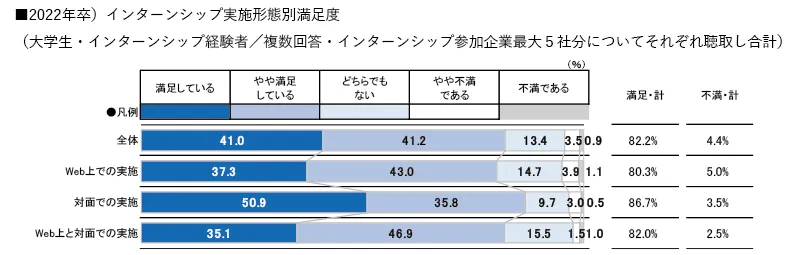 Webと対面で、インターンシップ満足度に差