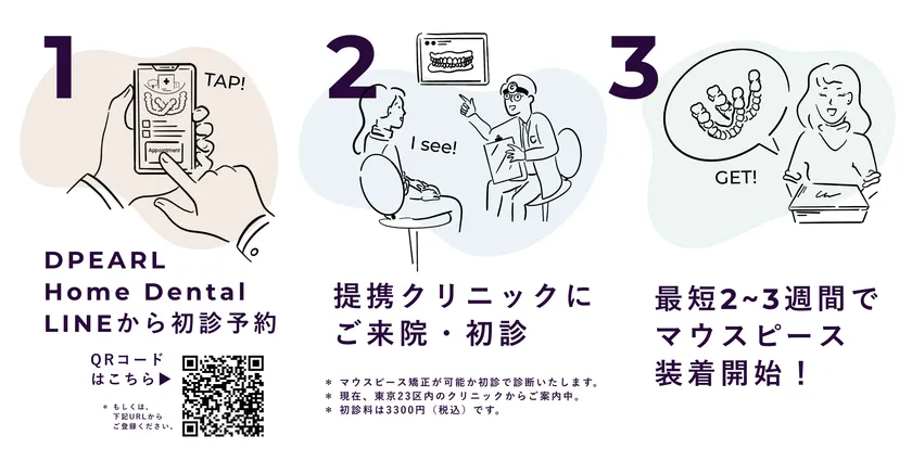 また、クリニックでの初診のほかに、コロナ禍でも外出不要かつ、歯並びの画像をスマートフォンで撮影するだけで、歯科医が一人ひとりに合った矯正プランを無料で案内する歯並びコンサルティングサービス『DPEARL Home Dental』や、自分の歯並びの3D矯正シミュレーションを確認し、DPEARLでの歯科矯正を無料でプレ体験できるPOPUPイベント『DPEARL studio』なども開催しています。