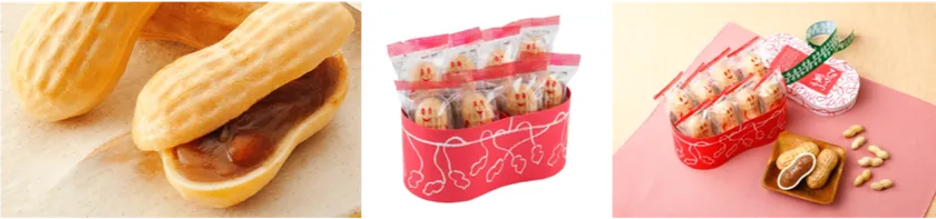千葉県産の落花生を100%使用し、落花生の蜜煮入り特製餡を、発酵バターたっぷりのパイ生地で包んで香ばしく焼き上げており、餡のまろやかな甘さと、バターの風味が絶妙な味のハーモニーを奏でる逸品となっています。