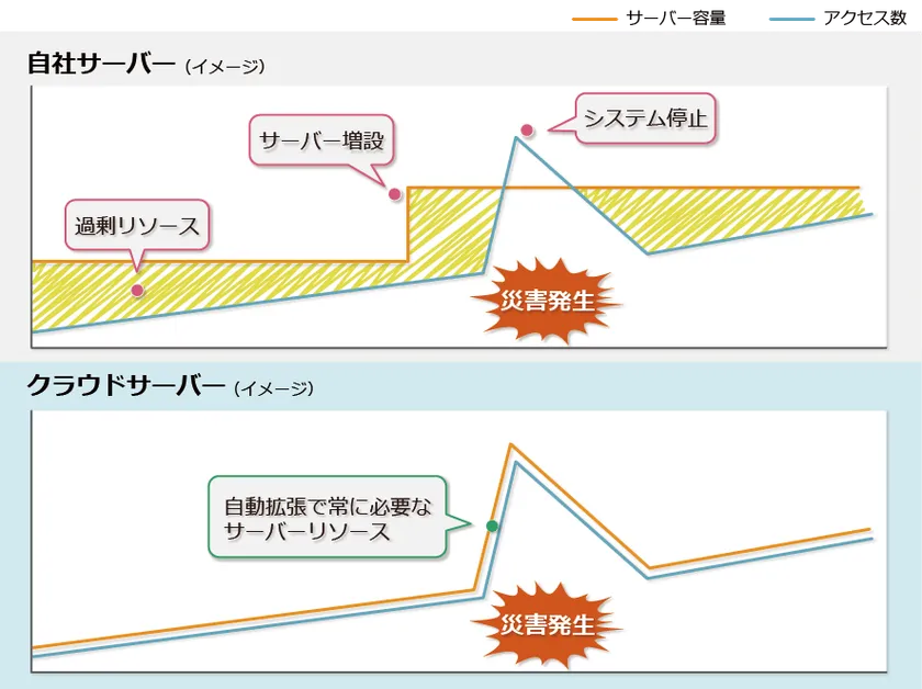 従来の安否確認システムの多くは、自社でサーバーを構えるオンプレミス型と呼ばれるシステムで、想定外のアクセスには耐えられないものでした。
