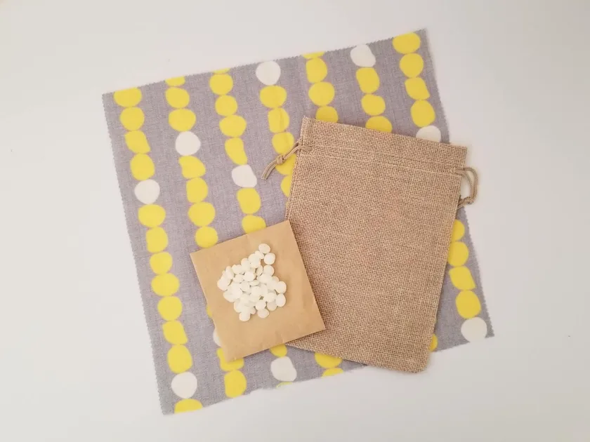 ※みつろうラップとは、ミツバチの巣の原料である蝋(ろう)を布に染み込ませてつくる食品保存用のラップです。繰り返し使えて脱プラスチックになるだけでなく、新たにみつろうを染み込ませることで再生することもでき、オーガニックな布で作ればそのまま土に埋めて自然に還すことも可能という、まさに「循環」を暮らしの中に手軽に取り入れることのできる、いま注目が高まるサステナブルキッチングッズです。