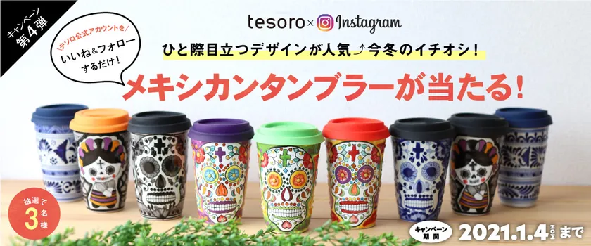 ■「tesoro」公式Instagramにて、フォロー&いいねで“tesoroオリジナル メキシカンタンブラー”プレゼントキャンペーン実施中