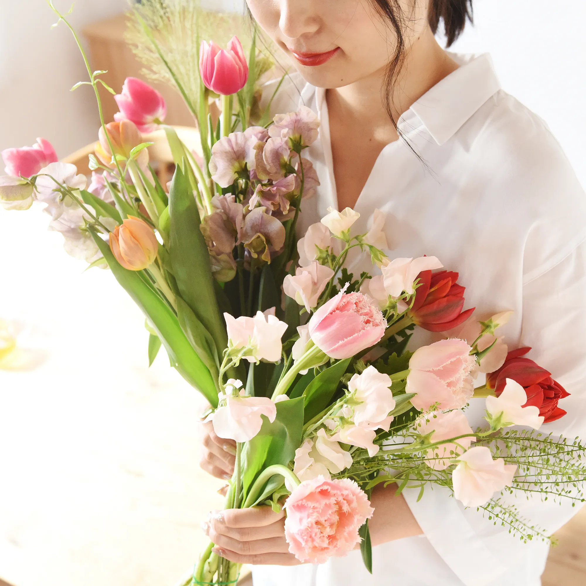 花を楽しんでいただく「出会い」となるように、日比谷花壇が季節の旬の花やおすすめの花をセレクトしてお届けするプランです。