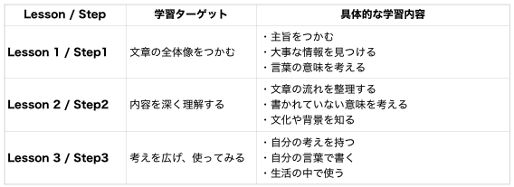 “英語を読む”だけでなく、“読み取って考え、自分の言葉で表現する”力まで伸ばすことを目的に設計されました。