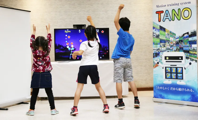 TANOはセンサーを利用して体の動きや音声を読み取ることでソフトウエア内のコンテンツを楽しむことができ、認知症や重度障がい者、子どもまで幅広い層の方が利用できるゲーミフィケーションシステムです。