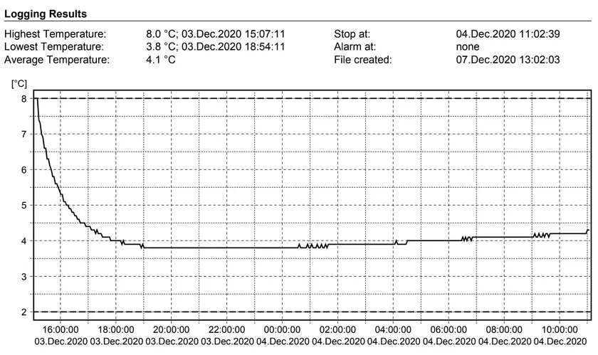 オンラインで確認できる温度ロガー結果データ