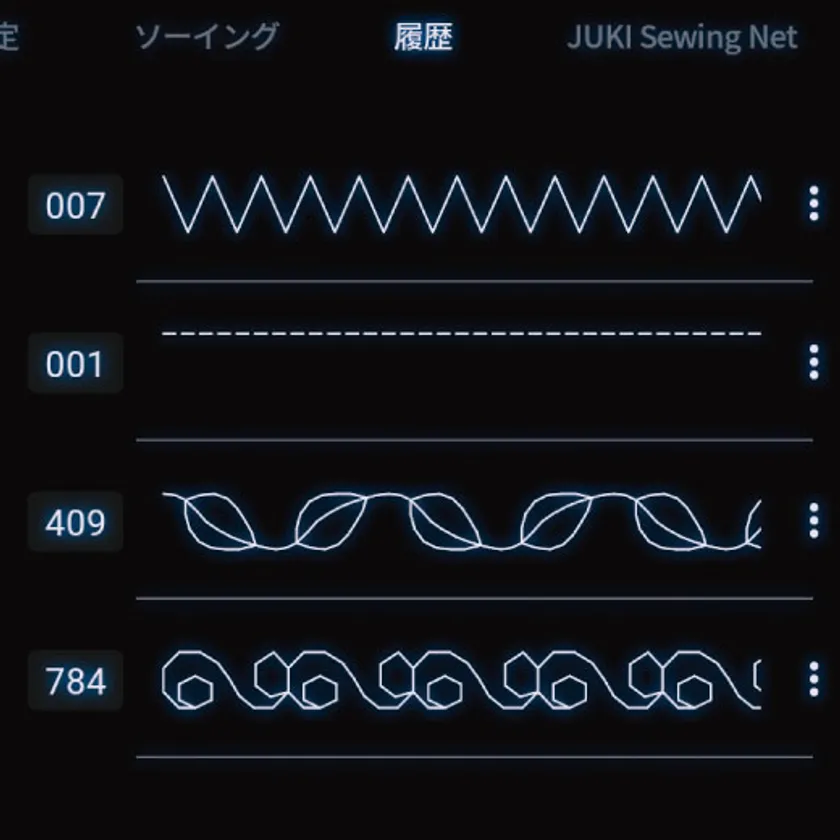 直前に縫った模様10種類(各種設定含む)を呼び出せる。
