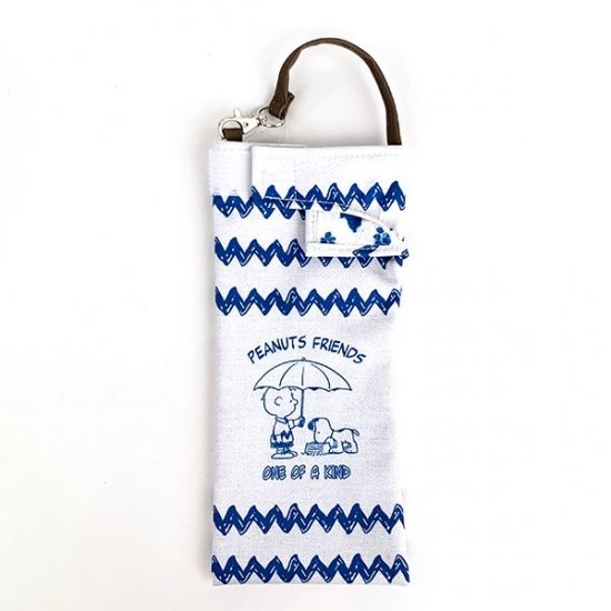 くるっと収納できる、くるポンのブルーのスヌーピーコミックデザインです。結露したペットボトルや雨で濡れた折り畳み傘を収納出来るように設計された2way仕様です。内生地は吸水生地なので水分をぐんぐん吸収してくれますよ♪