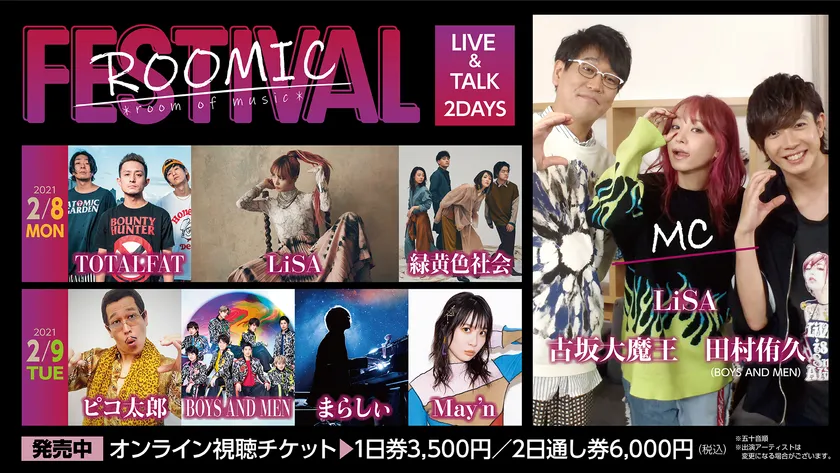 LiSAはじめ豪華アーティストが出演! 音楽番組「ROOMIC」のオンライン生配信イベント 「ROOMIC FESTIVAL」が2月8日、9日の2日間で開催
