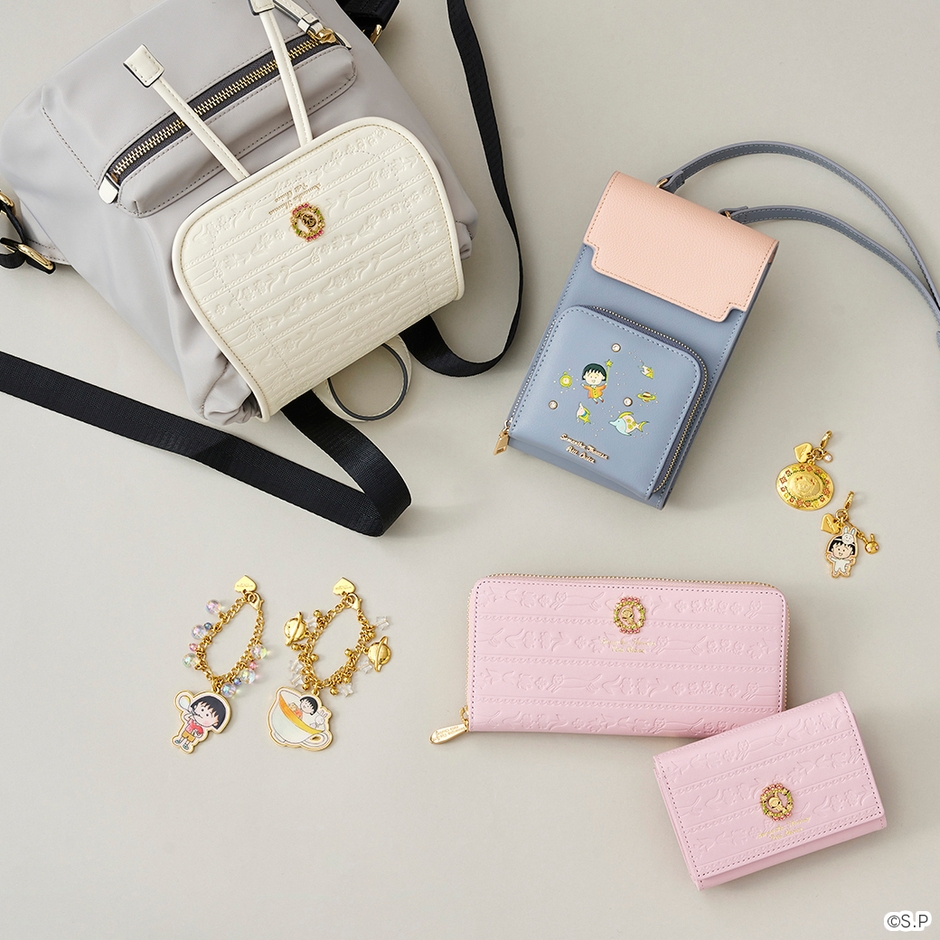 リュックやお財布の金具部分には、星のステッキを持って飛んでいるまる子がキラリと輝きます。