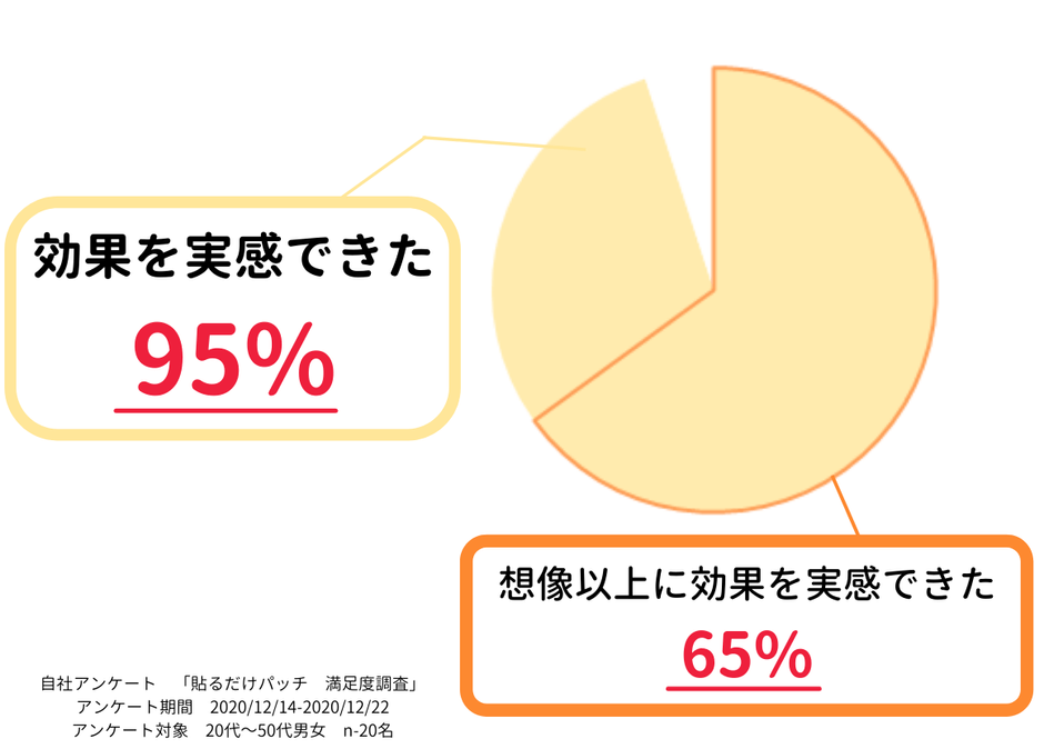 新型コロナウイルスが再拡大し外出自粛や夜の街の制限が厳しくなっているにも関わらず、11月末のリリースから多くのお問い合わせをいただいております。弊社独自に行ったアンケート調査では、95%の方から効果を実感したとの回答。さらに全体の65%の方からは想像以上に効果があったとの嬉しいお声もいただきました。