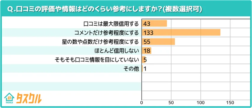 回答数の1位は「コメントだけ参考程度にする」、2位は「星の数や点数だけ参考程度にする」でした。