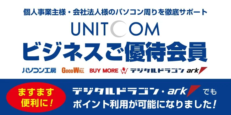 法人・個人事業主様専用の 「ユニットコム ビジネスご優待会員サービス」がさらに便利に! デジタルドラゴンならびにパソコンSHOPアークでもポイント利用が可能に!