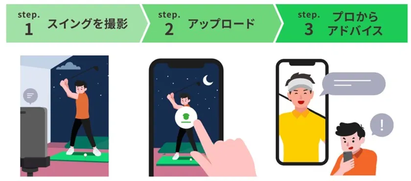 深夜でも自宅でもラウンド中でも、いつでもプロの指導が受けられる